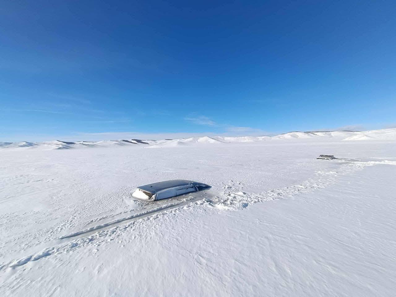 Нуурын эргээс 280 орчим метрийн зайд “Тоёота пробокс” загварын суудлын цөмөрсөн байгааг татан гаргахаар ажилласан боловч нуурын мөс хэт нимгэн байгаа тул татан гаргах ажиллагааг түр зогсоогоод байна.